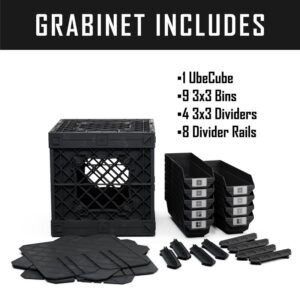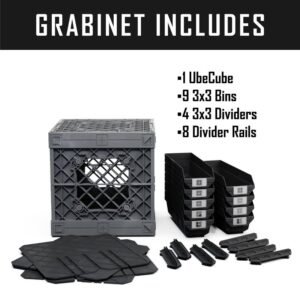 UbeCube Grabinet Kit 3″x3″ Crate Black/Gray Bin: Stackable Polypropylene Decorative Box, Industrial Style, 13.5″ Square