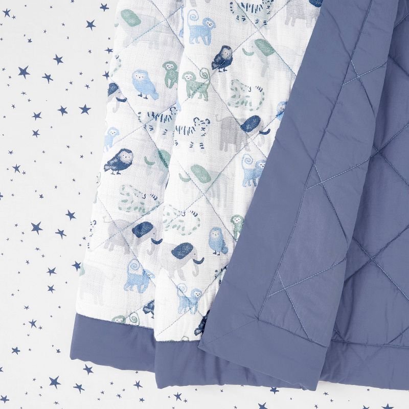 Blanket is cotton muslin on front, cotton poplin on reverse