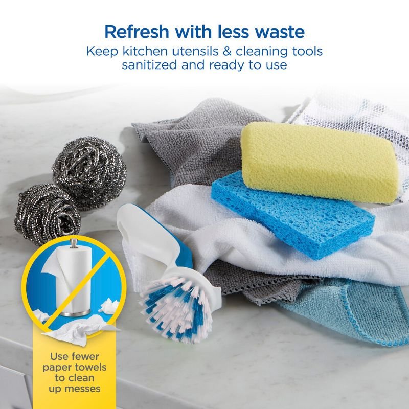 REFRESH WITH LESS WASTE. Keep kitchen utensils and cleaning tools sanitized and ready to use — no need to throw away your sponges too soon or use wasteful paper towels to clean up messes.