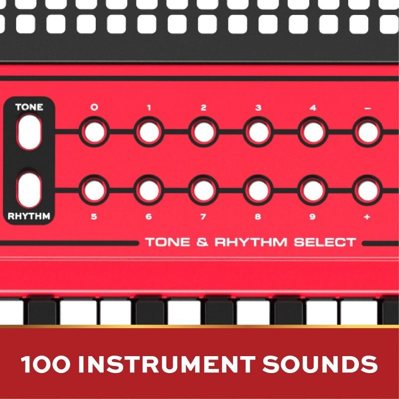 Features 29 demo songs and 100 different instrument sounds.