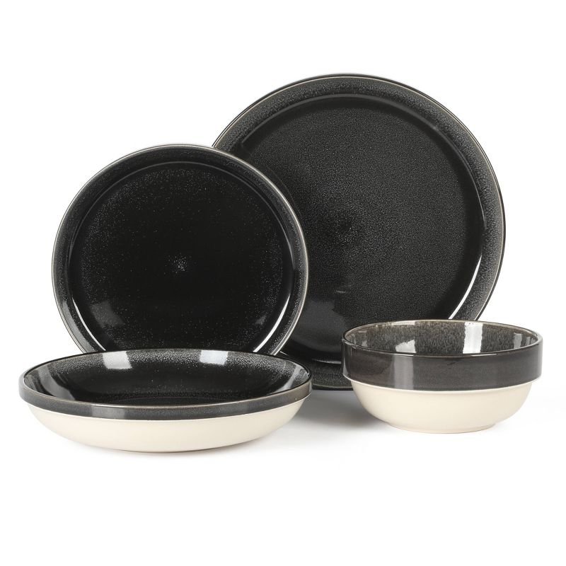 Gibson Home Sur La Table Kitchen Essentials Banquette 16pc Reactive Glaze Stoneware Dinnerware Set Black: Kitchen Dish Set, Service for 4