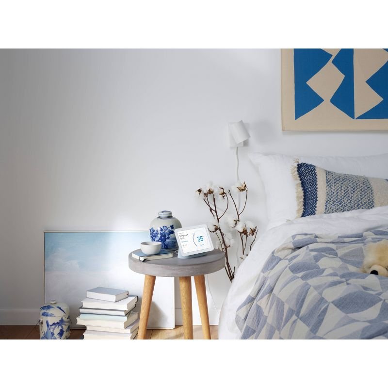 On your bedside table, Nest Hub helps you wind down at night with soothing sounds and wake up to a Sunrise Alarm. It can even help you get a better night’s sleep with Sleep Sensing.***