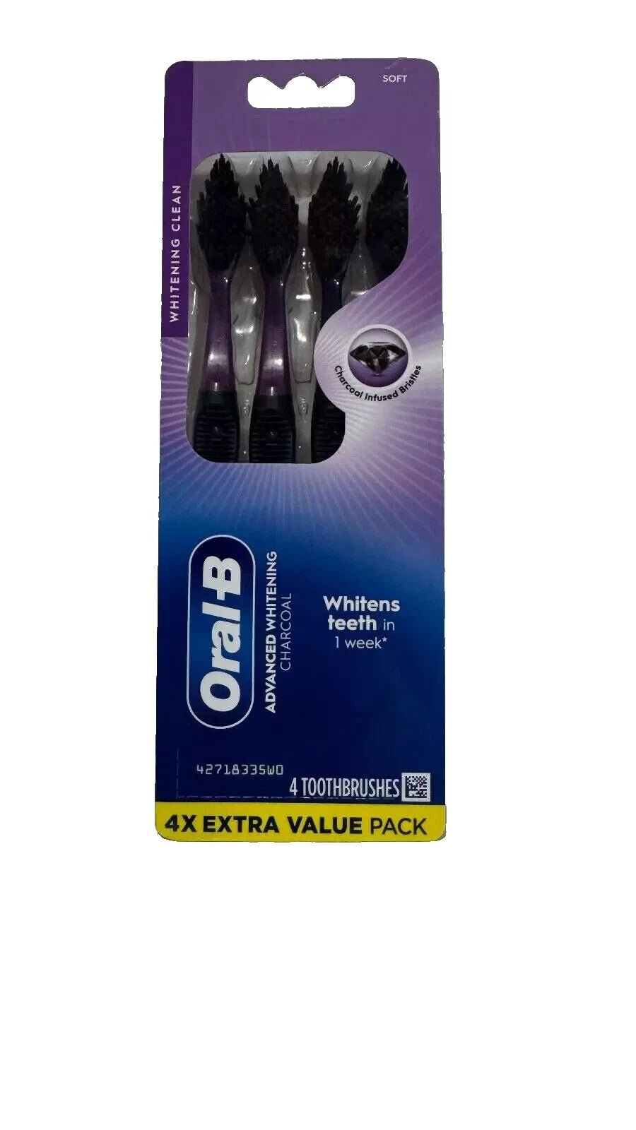 NEW Oral-B Charcoal Toothbrush Whitening Therapy, Soft 4ct
