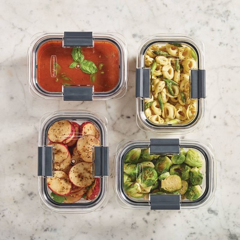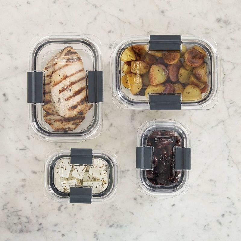 Rubbermaid Brilliance food storage containers are built with secure latches on each piece, so you can transport your favorite foods mess-free—even soups, stews, and sauces. These 100% leakproof, crystal-clear, durable Tritan plastic lids and bases make it easy to see what’s inside, plus the containers are stain- and odor-resistant, so they stay looking like new. Brilliance food storage containers have built-in vents that allow steam to escape so you can conveniently microwave food without removing the lid. They stack neatly in the fridge and cabinets, and are freezer and dishwasher safe.
