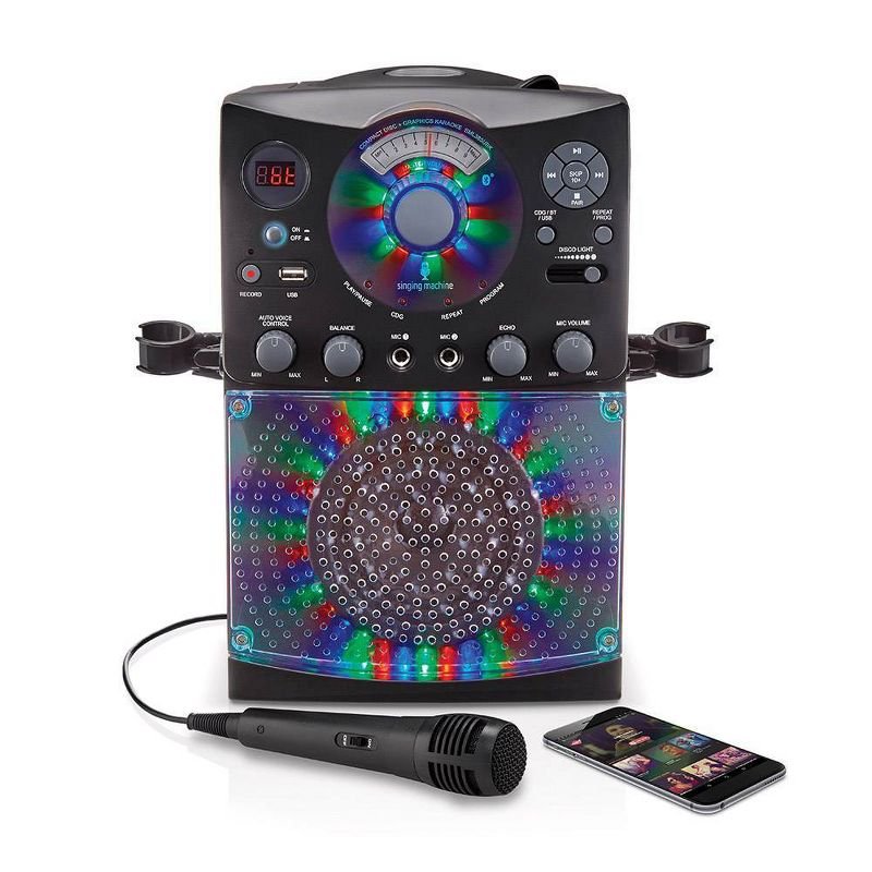 Singing Machine Bluetooth Karaoke System with LED Disco Lights and Microphone