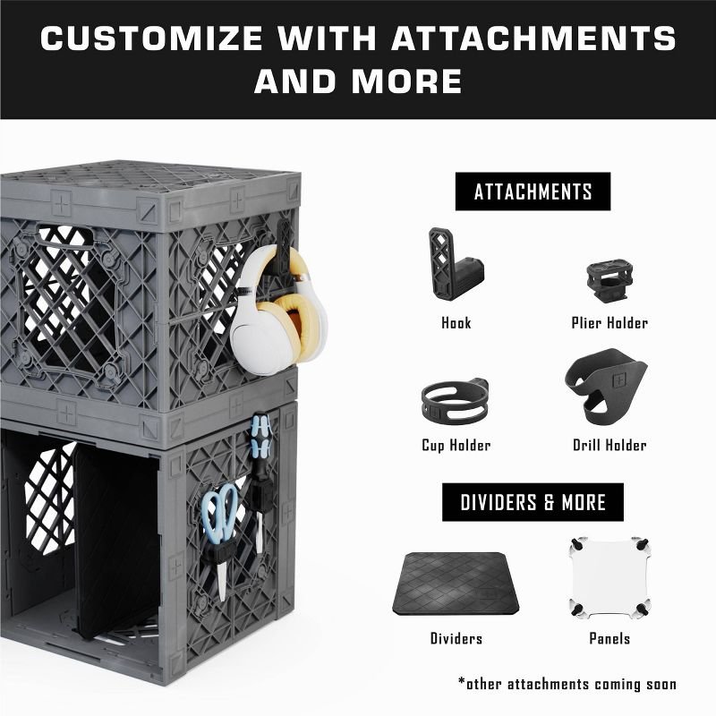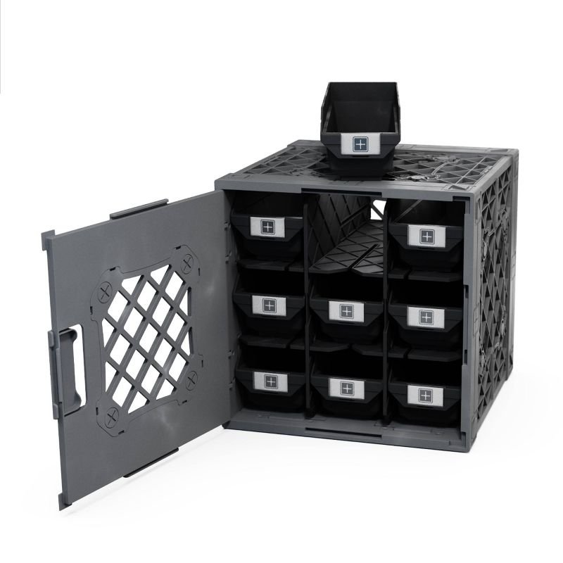 UbeCube Grabinet Kit 3″x3″ Crate Black/Gray Bin: Stackable Polypropylene Decorative Box, Industrial Style, 13.5″ Square