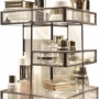 - LARGE BUT EASY TO PLACE-4layer and Spin design can hold many items while take small space ,Measures- L*H*W:9.06*11.81*11.81inches,has compartments of various sizes and shapes to keep all your essentials,such as Skincare,jewelry separate, organized and neatly displayed. The compartments hold Makeup/Jewelry/ Brushes/ Perfumes/Skincare/Foundations ornecklaces, bracelets, rings, earrings, watches, etc anything about your collection.