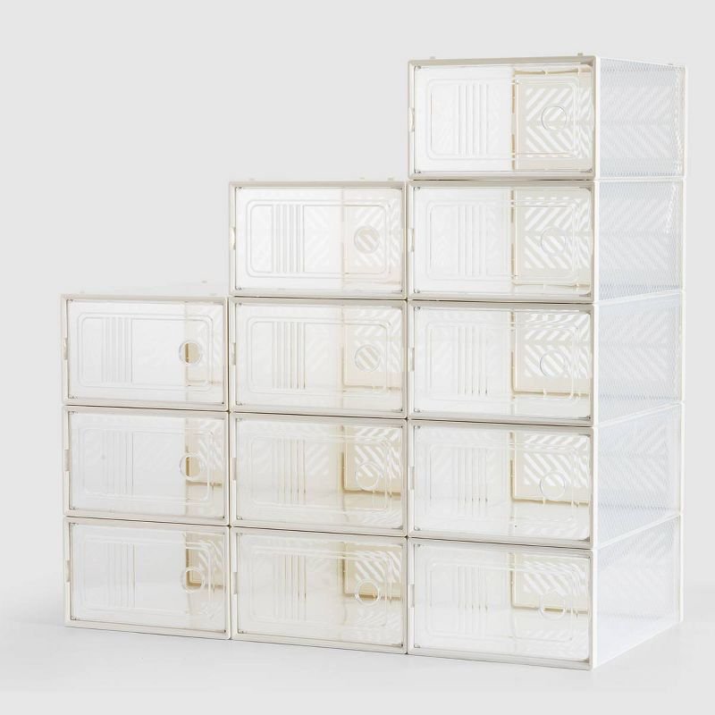Clear Front Door: No more digging through boxes to find your shoes. The transparent front door allows a quick peek inside, making it easy to grab the pair you need.